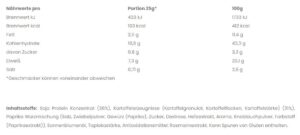 BCAA 71,4% (L-Leucin 35,4%, L-Isoleucin 17,7%, L-Valin 17,7%), Emulgator Sonnenblumenöl 0,7%, Zichorien-Inulin 14,2%, Citronensäure, Aroma, Natriumchlorid 1,4%, natürliches Aroma, Süßstoffe Acesulfam K und Sucralose, Farbstoff Curcumin, Farbstoff Allurarot AC*.