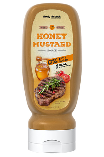 Die Body Attack Honey Mustard Sauce ist das Highlight auf jeder Grillparty. Ab sofort kannst Du auch während einer Low-Carb und Low-Fat Diät Dein Grillgut mit leckerer Honey Mustard Sauce ohne schlechtes Gewissen geniessen. Die Honey Mustard Sauce liefert nämlich 0 % Fett und Zucker. Gleichzeitig nimmst Du mit einer Portion (10 ml) nur 1 kcal auf.