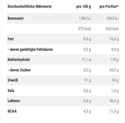 Für maximale Power stecken 65-71% Kohlenhydrate im besten Gainer. Energie, die sich sehen lassen kann. Fettarm. Aspartamfrei. Hervorragend verträglich. So einfach trainierst du am Limit und kommst rein in die Masse. Hand drauf.