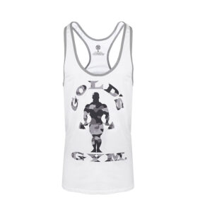 Das Golds Gym Stringer Tank Top eignet sich für jede Workout- Session. Es kommt im klassischen Style mit dem typischen Golds Gym- Aufdruck auf der Brust daher. Der Schriftzug Golds Gym ist über und unter dem Logo platziert. Genug Freiheiten während des Trainings sind durch einen weiten Ausschnitt und die dünnen Träger gegeben.Mit dem Tank Top finden sich auch beim Tragen in der Freizeit genug Kombinationsmöglichkeiten mit weiteren Kleidungsstücken. Wer zur Golds Gang gehören möchte, sollte in jedem Fall eines dieser Tank Tops für das Training griffbereit im Schrank haben. Die Tank Tops werden in den Farben weiss, royal blau, goldgelb, und hellgrau angeboten.