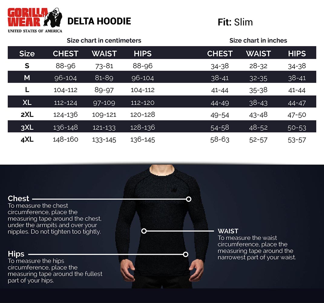 Dieser Gorilla Wear Delta Hoodie hat ein plissiertes Schulterdesign und Raglanärmel. Der Gorilla Wear Hoodie wurde entwickelt, um dir Komfort und Bewegung während jeder Art von Training zu ermöglichen.
