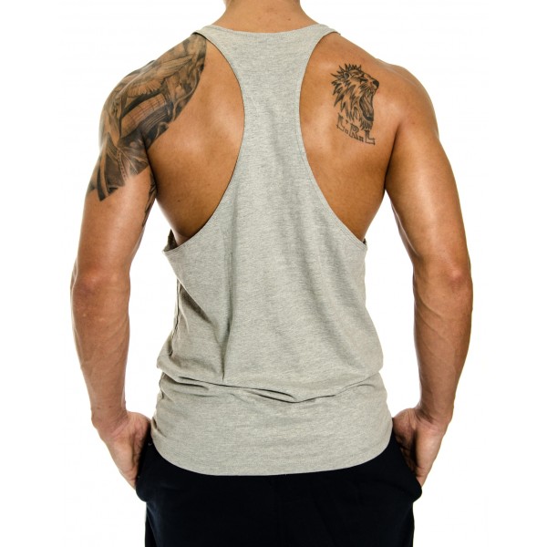 Mit diesem Stringer kann niemand übersehen was dein Motto ist. Grauer Stringer aus 100% Baumwolle mit schwarzem Motto Print: NO PAIN NO GAIN.