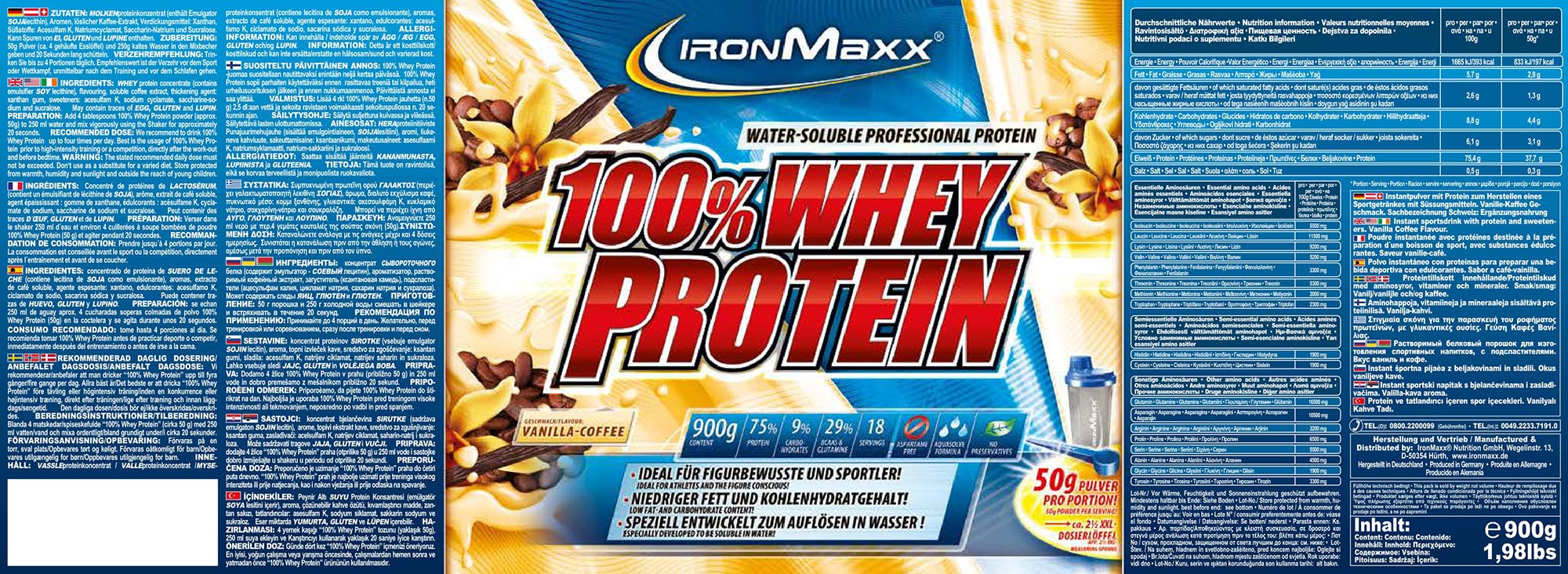 Mit dem IronMaxx® Whey Shake erhältst Du ein qualitativ hochwertiges, wasserlösliches Proteingetränk mit hoher biologischer Wertigkeit..