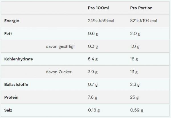 Der Shake enthält 25 g Protein, ist fettarm, ohne Zuckerzusatz und enthält 194 Kilokalorien pro Flasche. Das bedeutet, dass wir den perfekten Snack für unterwegs kreiert haben, der dich durch deinen anstrengenden Tag bringt, ohne all die unerwünschten Extras.