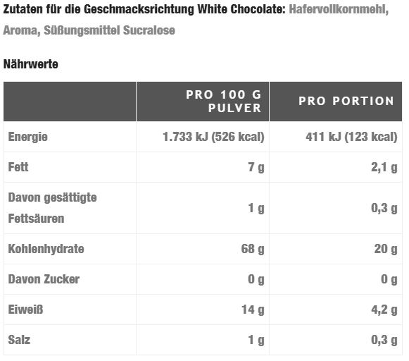 Hafervollkornmehl, Aroma, Süssungsmittel Sucralose