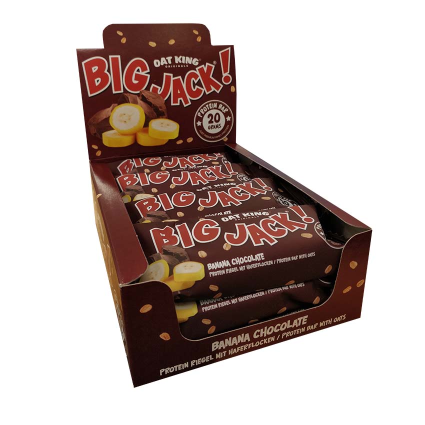 Oat King Big Jack ist ein echtes Allround-Talent. Mit zarten Haferflocken und wertvollem Whey Protein (20 Gramm Eiweiss pro Riegel) ist der vollwertige Snack eine richtige Zwischenmahlzeit. Seine softe Konsistenz, der leckere Geschmack und die spürbare Power überzeugt auf ganzer Linie. Ready to meet Jack?
