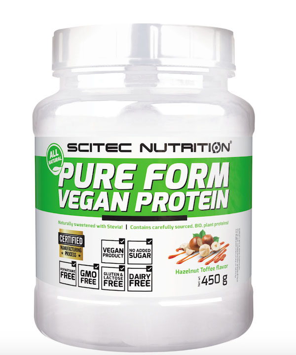 Mit dem Pure Form Vegan Protein bringt Scitec Nutrition ein sehr hochwertiges, pflanzliches Mehrkomponentenprotein auf den Markt. Die Eiweißmischung aus 5 Proteinquellen (Erbse, Reis, Kokosnuss, Granatapfel und Kürbis) ist von bester Qualität und verspricht eine deutlich höhere biologische Wertigkeit als einzelne pflanzliche Proteine.
