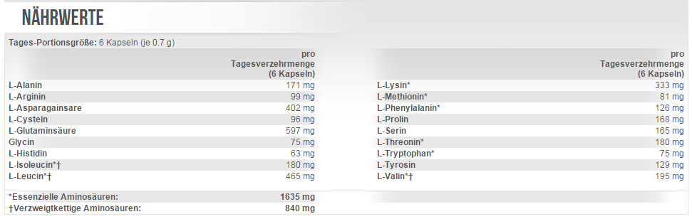 Essentielle Aminosäuren sind unersetzbar für uns, weil sie vom Körper nicht hergestellt werden können und über die Nahrung aufgenommen werden müssen. Die verketteten Aminosäuren (BCAA’s) sind auch eine der Essentiellen und sie haben einen Anteil von 35% der essentiellen Aminosäure in Muskelproteinen.