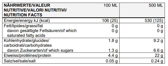 - 20 g hochwertiges Molkeproteinisolat (Whey)