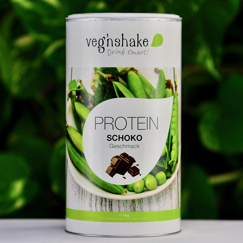 Veg’nshake-Protein ist ein hochwertiges, pflanzliches Eiweisspulver aus Erbsen- und Reisproteinen.