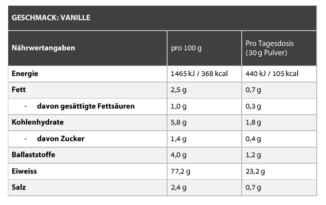 - 77,2g Eiweiss pro 100g (Vanille)
