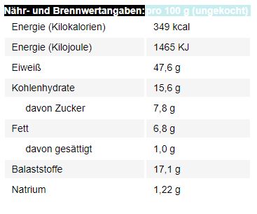 Hinweis: enthält Gluten und Soja. Kann Spuren von Milch, Lupine, Ei und andere allergene Stoffe enthalten.